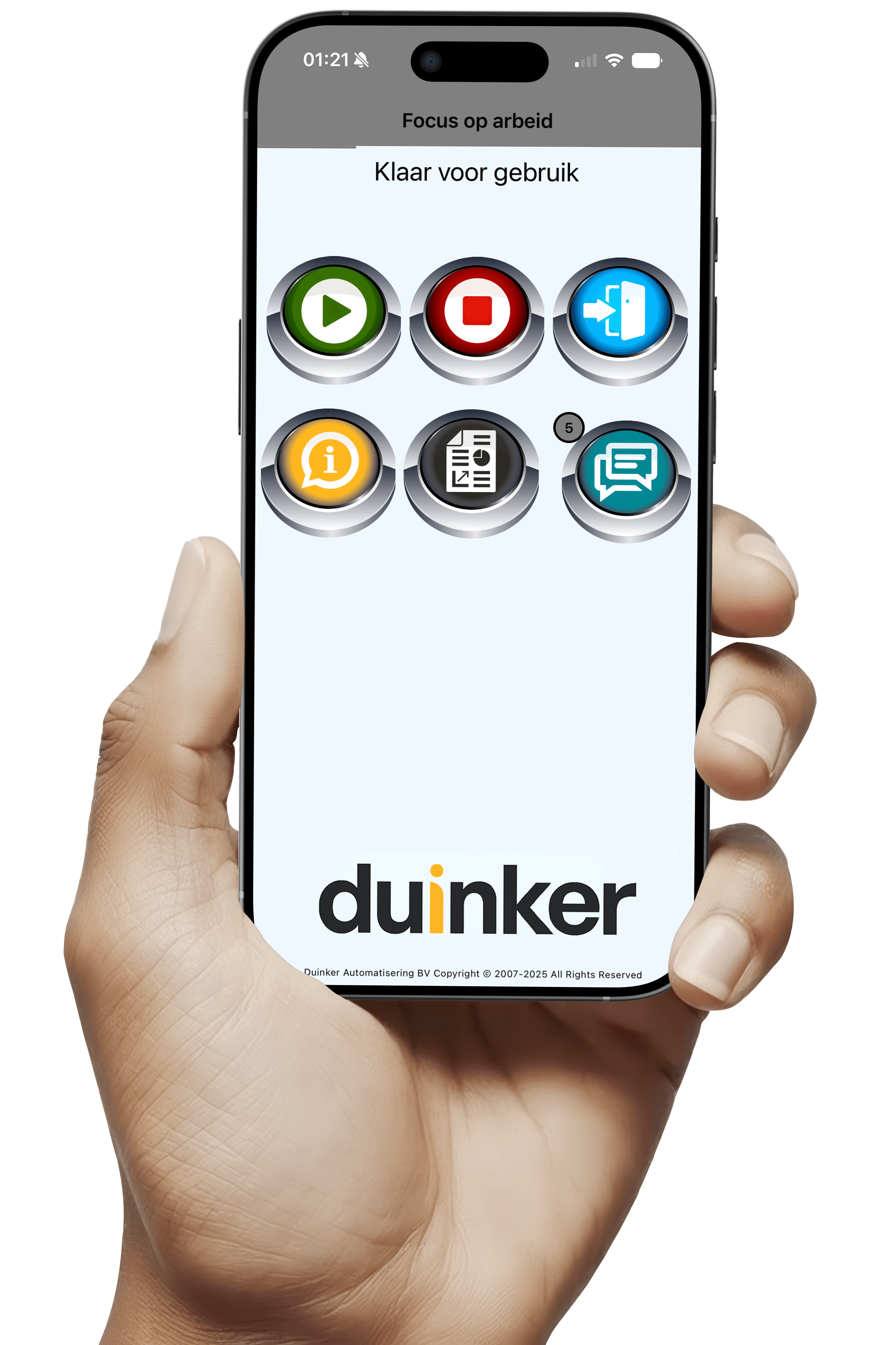 Met de Duinker-app geef je je personeel eenvoudig de mogelijkheid om in- en uit te klokken, waar ze ook zijn. Minder administratie, meer overzicht en maximale efficiëntie. Direct beschikbaar voor iPhone en Android.